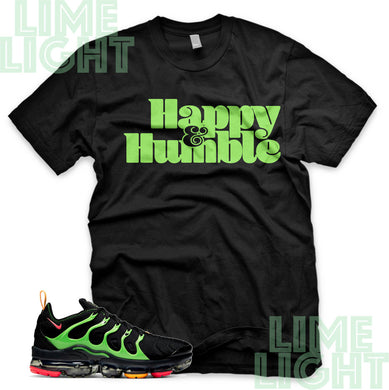 Ember Glow/Electric Green/Kumquat "Happy and Humble" VaporMax Plus Black Sneaker T-Shirt
