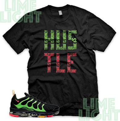 Ember Glow/Electric Green/Kumquat "Time is Money" VaporMax Plus Black Sneaker T-Shirt